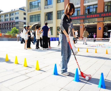 教学节活动伊始,一场庄重的开幕仪式隆重举行,校长助理陈宁热情洋溢地致辞。开幕式节目表演圆满结束后,教学节活动正式拉开帷幕。由体育专业教师及体育运营与管理专业学生共同策划组织的9个区域、8大竞赛体验运动项目依次展开,涵盖匹克球区、极速叠杯区、躲避球区、飞盘九宫格区、飞镖区、射箭区、旱地冰壶区、软式曲棍球区以及兑奖区。现场同学们兴致勃勃,积极参与其中!广场上洋溢着欢笑声,闯关时的呐喊声此起彼伏,拆奖品盲盒的惊喜连连,“边学边竞赛”的独特学习方式,使得此次教学节活动别具一格。